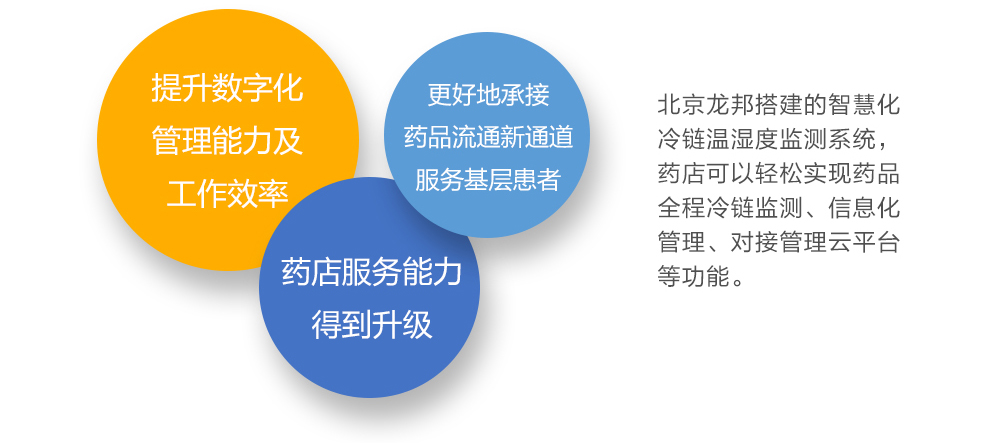 北京龍邦科技針對各省“雙通道藥店”遴選標準,為藥店量身打造符合相關要求的冷鏈溫濕度監測系統。通過對藥品儲存區域的陰涼柜、冰箱、冷庫以及儲運保溫箱等進行實時溫濕度在線監測、預警報警,并匯集數據上傳至冷鏈追溯云平臺及手機APP,從而實現藥品的全流程可追溯,確保藥品質量,助力藥店冷鏈儲運管理智慧化升級。